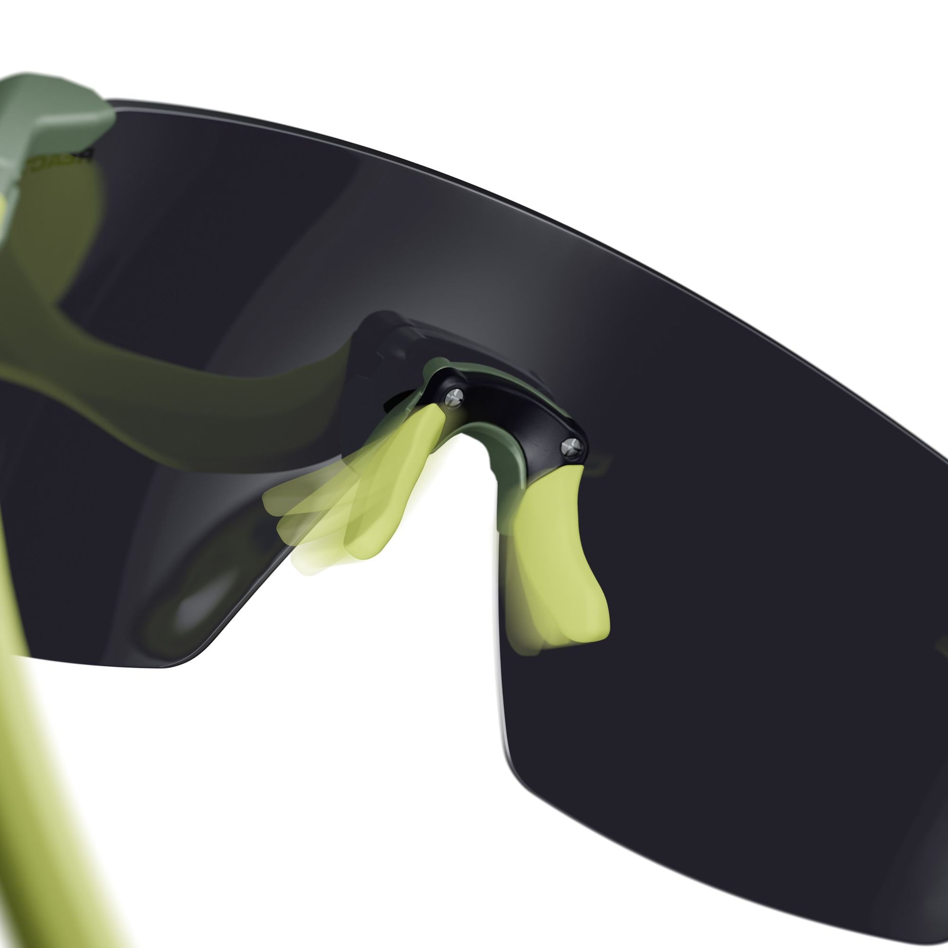 Frameless 3-Link Design avec fixation en 3 points (branches et nez) directement sur le verre pour un design sans monture, ultra léger, une vision dégagée et un confort maximal en mouvement.