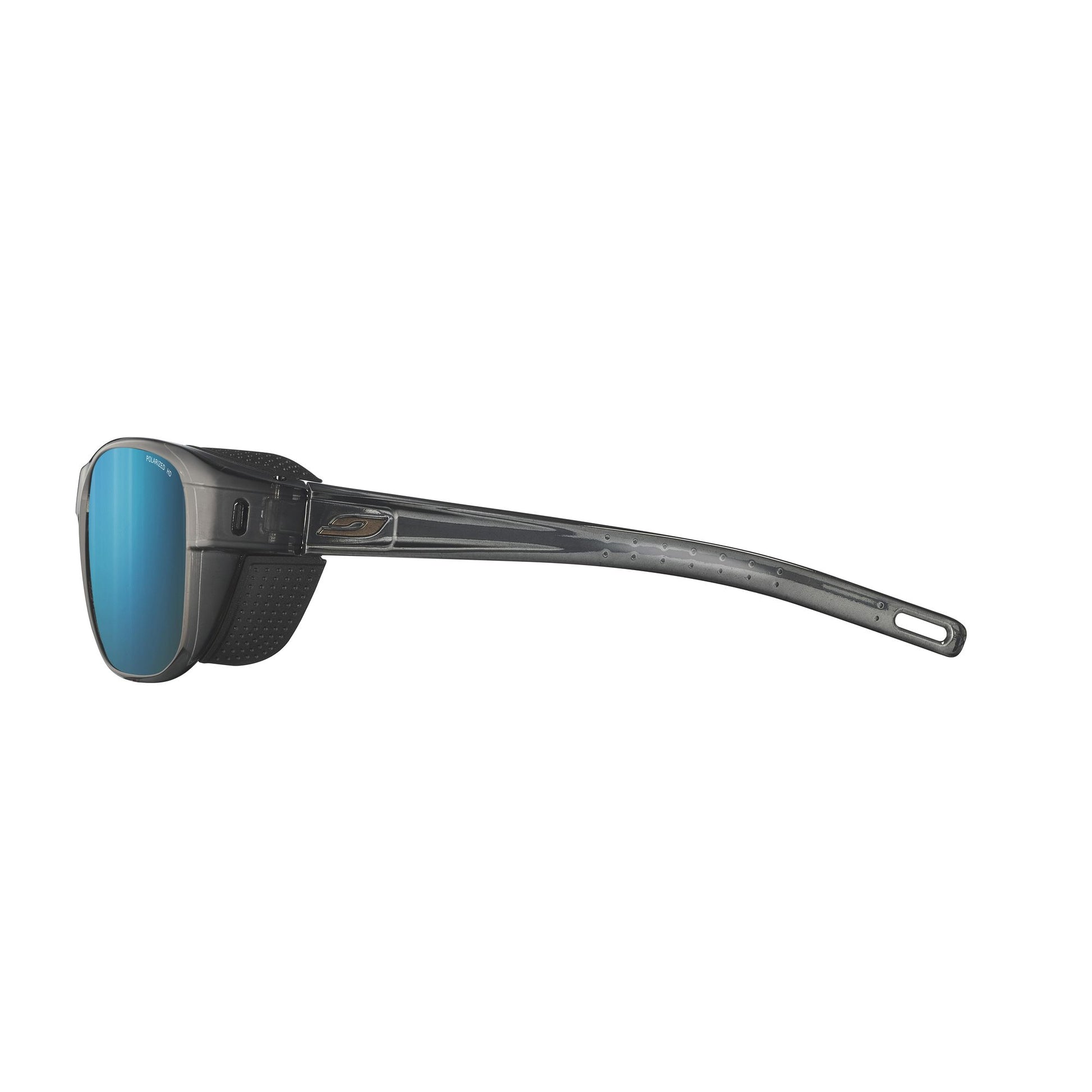 Cat. 4 polycarbonate lens (visible light transmission rate: 6%) with exclusive Julbo Glare Control technology, offering a polarization filter that eliminates 80% of light reflection and reduces glare on reflective surfaces, especially water.